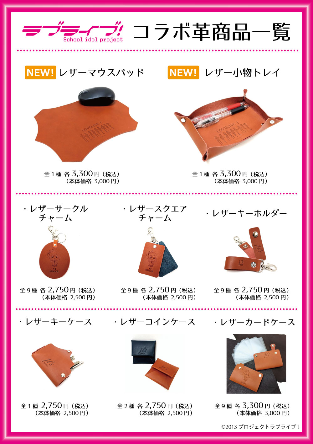 劇中衣装、楽曲衣装、メンバーカラーなど様々にイメージを膨らませながら、レザーグッズを楽しんで作成できます。