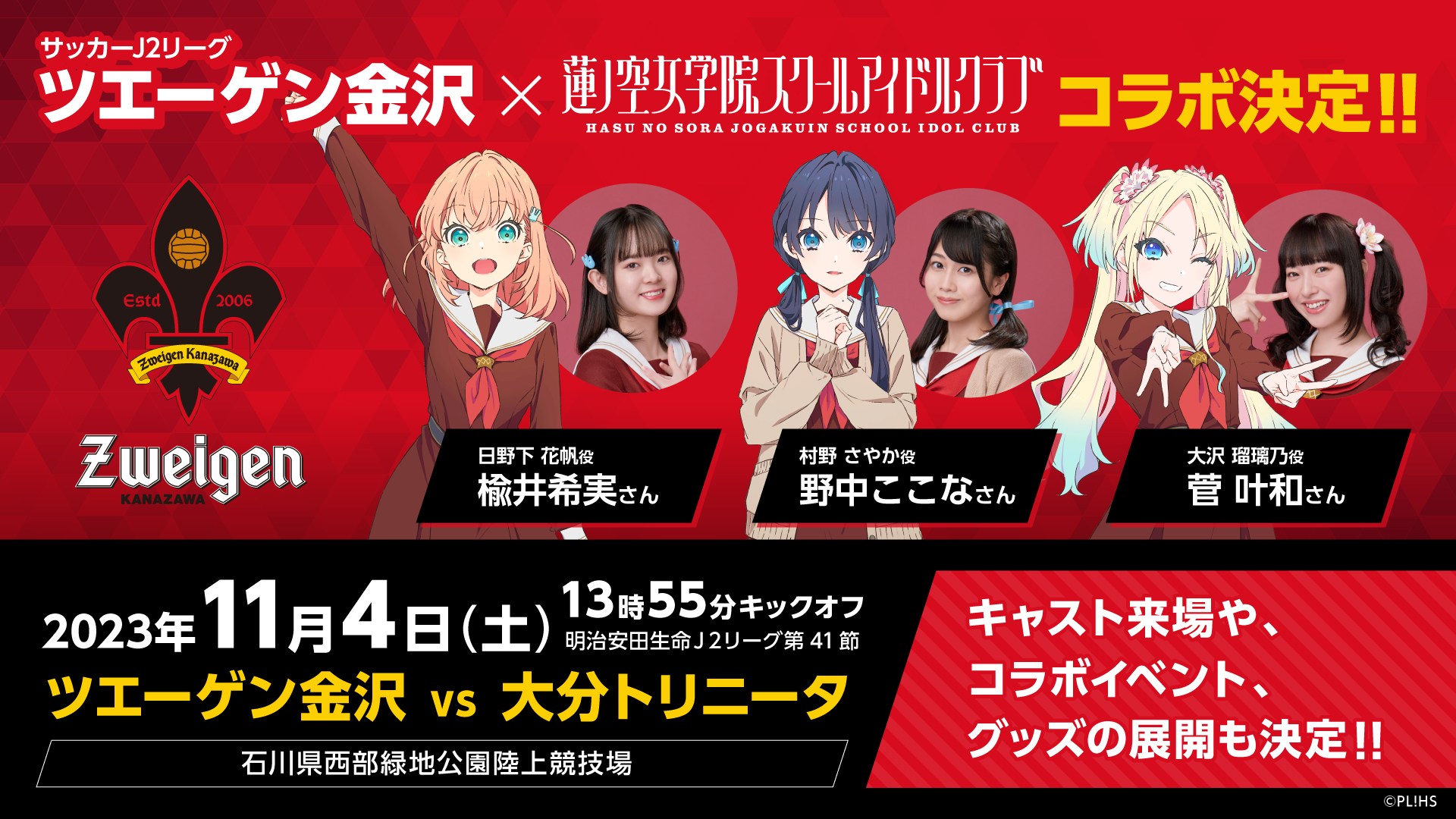 ラブライブ!蓮ノ空女学院スクールアイドルクラブ×ツエーゲン金沢 コラボのお知らせ